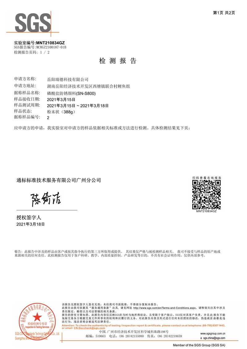 本產(chǎn)品為經(jīng)過表面處理的磷酸鹽,并復(fù)合一定量的超微(細)粉體制成。磷酸鹽微溶于水后,磷酸根在鋼鐵表面形成一層致密的磷化膜,這層磷化膜能有效阻隔氧﹑水及其它有害物質(zhì)對鋼鐵表面的侵蝕;同時,通過對粉體顆粒表面處理及復(fù)合一定量的超微(細)粉體,使顏料與基料結(jié)合力增強,促進漆膜性能,有利于阻止有害物質(zhì)對鋼鐵表面的侵蝕.